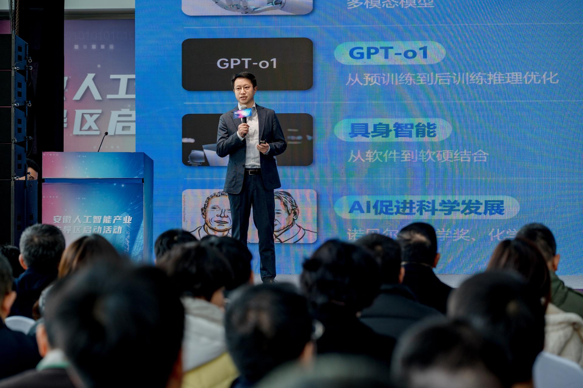 12月28日,安徽人工智能产业先导区启动活动在中国合肥智能语音产业园8号楼举办,安徽省汇聚各方资源打造的省内首个人工智能全产业链创新生态空间正式启动。安徽省科技厅厅长赵明,合肥市委常委、副市长袁飞出席会议并致辞。加拿大工程院外籍院士、智象未来创始人梅涛,阿尔法公社创始人许四清,寒武纪联合创始人刘道福等通用人工智能领军企业、科技领军企业、高新技术企业、知名投融资机构代表120余人参加。活动由安徽省科技厅、合肥市人民政府主办,合肥市科技局、合肥高新区管委会、合肥产投集团承办。